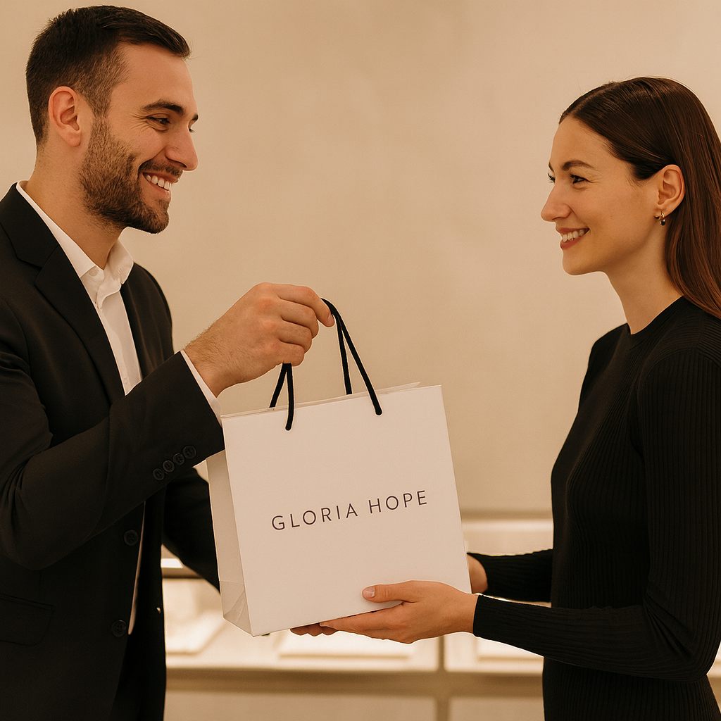 Συνεργαζόμαστε μόνο με εργαστήρια που σέβονται τον άνθρωπο, πληρώνουν αξιοπρεπώς και τηρούν περιβαλλοντικά πρότυπα. Κανένα κόσμημα της Gloria Hope δεν δημιουργείται μέσα από εκμετάλλευση.